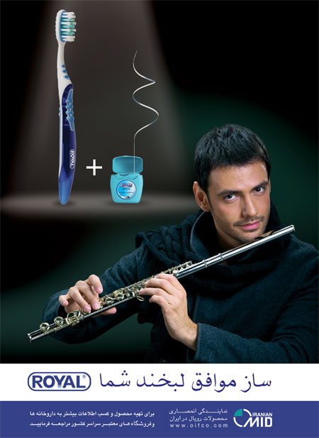 چند سال پیش بیلبوردهای تبلیغاتی شهر تهران در انحصار لبخند یک جوان خوشچهره قرار گرفت که درحالی که جیب کتش را که در آن یک مسواک قرار داشت نمایش میداد، یک لبخند تمام قد به بینندگان تحویل میداد. عبارت زیر تصویر شعار اصلی برند «ROYAL»، تولید کننده وسایل بهداشت دهان بود که به تازگی به بازار ایران وارد شده بود.