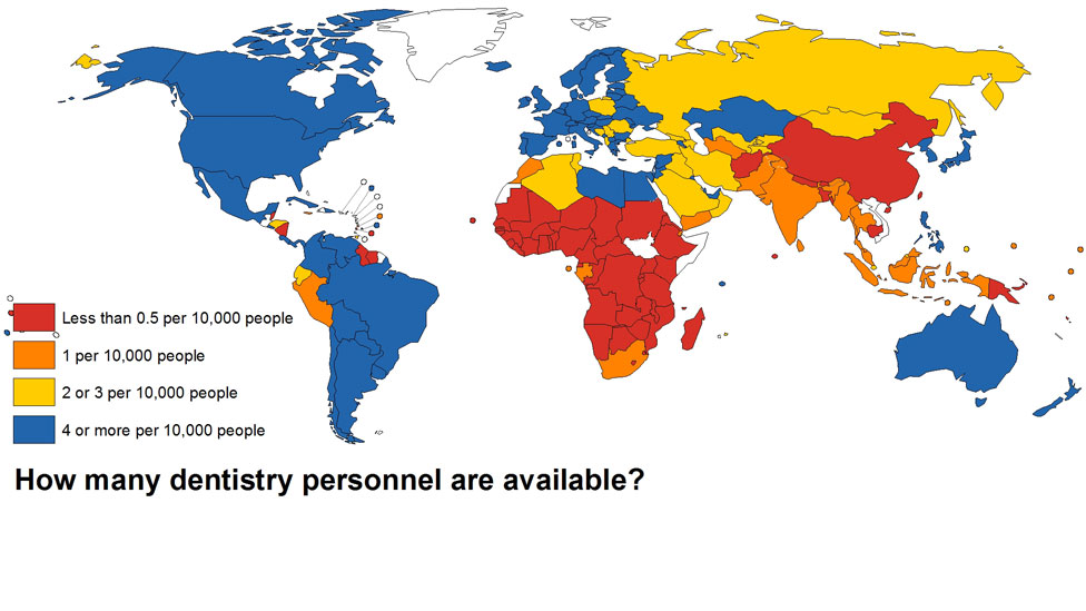 تصویر زیر وضعیت سرانه دندانپزشکان در سطح کشورهای جهان را نشان میدهد