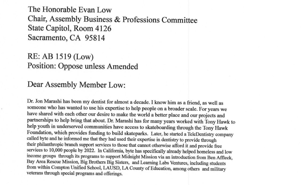 خبرگزاری یاهو اوایل سپتامبر ۲۰۱۹ اعلام کرد پاتریشیا آرکت، در نامه‌ای شدیداللحن به ایوان لو، عضو مجلس ایالتی کالیفرنیا، نسبت به قانون پیشنهادی او برای الزامی کردن عکس‌برداری در مطب قبل از ارتودنسی در این ایالت، اعتراض کرده و گفته این قانون مانع از دسترسی روستائیان و مردم مناطق محروم به این خدمت دندانپزشکی می‌شود.
