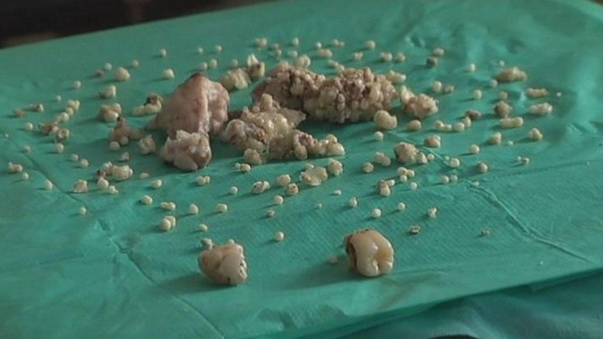 فطعات خارج شده از فک این نوجوان نه ۲۳۲ دندان، که ۲۳۲ قطعه با ساختاری شبیه ساختار دندان هستند.