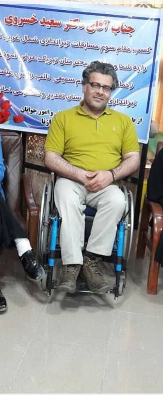 بنده دکتر سعید خسروی، دندانپزشک عمومی، متولد سال ۱۳۵۴ در شهر ازنا، استان لرستان و فرزند دوم از ۷ فرزند خانواده هستم. بین سن ۲ تا ۳ سالگی، با اینکه ۱ مرحله واکسیناسیون فلج اطفال روی من انجام شده بود، شاید به خاطر شرایط نامناسب نگهداری دارو و فاسد شدن آن، به فلج اطفال و متعاقب آن انحراف ۶۵ درجهای ستون فقرات دچار شدم. تا به حال ۷ مرحله جراحی بر روی ستون فقرات من انجام شده و با عصا و ویلچر قادر به حرکت هستم.