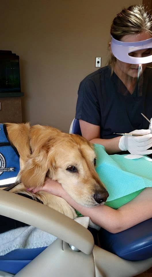 یک کلینیک دندان‌پزشکی در ایالت ایلینوی آمریکا سگی آموزش دیده را به عنوان دستیار برای آرام کردن استرس بیماران به خدمت گرفته است