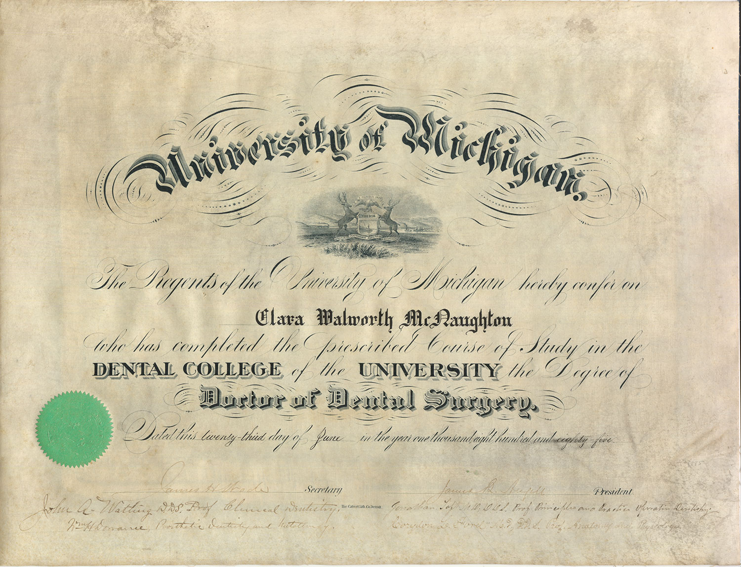 مدرک دکتر کلارا مک نوتن از دانشکده دندانپزشکی دانشگاه میشیگان