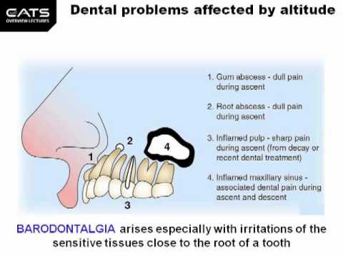 دندان درد ناگهانی در ارتفاعات علاوه بر خلبانان، ممکن است شامل حال مسافران هوایی نیز بشود. علاوه بر آن کوهنوردانی که به قلههای مرتفع پا میگذارند یا قواصانی که به عمق دریا میروند نیز ممکن است دچار دندان درد ناگهانی شوند.