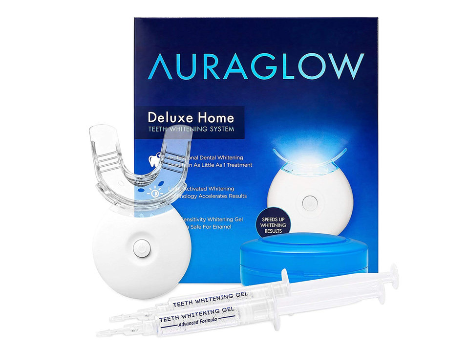 بسته کامل سفید کننده دندان، مارک «AuraGlow» در آمازون حدود ۴۶ دلار فروخته میشود، از کاربران ۴/۲ ستاره گرفته و بیش از ۲۲۰۰ مطلب درباره آن نوشتهاند.