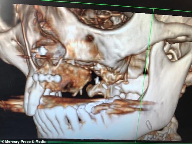 بیمار آنجا پی برد که آن آبسه، در اصل یک تومور سرطانی است باید بهزودی جراحی شود. پزشکان او را در عرض ۱۲ ساعت جراحی کردند و بعد از اینکه مقداری از استخوان آرواره او را برداشتند، آن را با ورقههای تیتانیومی و استخوان شانهاش بازسازی کردند.